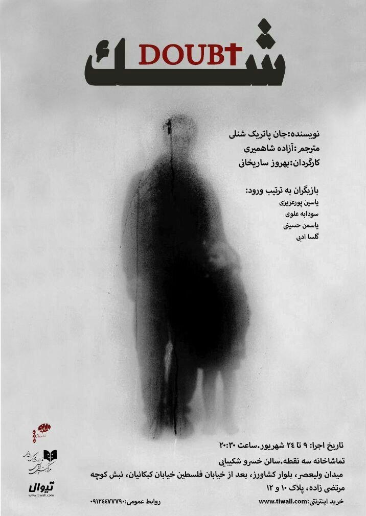 نمایش «شک» نوشته پاتریک شنلی و به کارگردانی بهروز ساریخانی از پنجشنبه  نهم شهریور تا جمعه 24 شهریور در سالن خسرو شکیبایی تماشاخانه سه‌نقطه روی صحنه می‌رود.