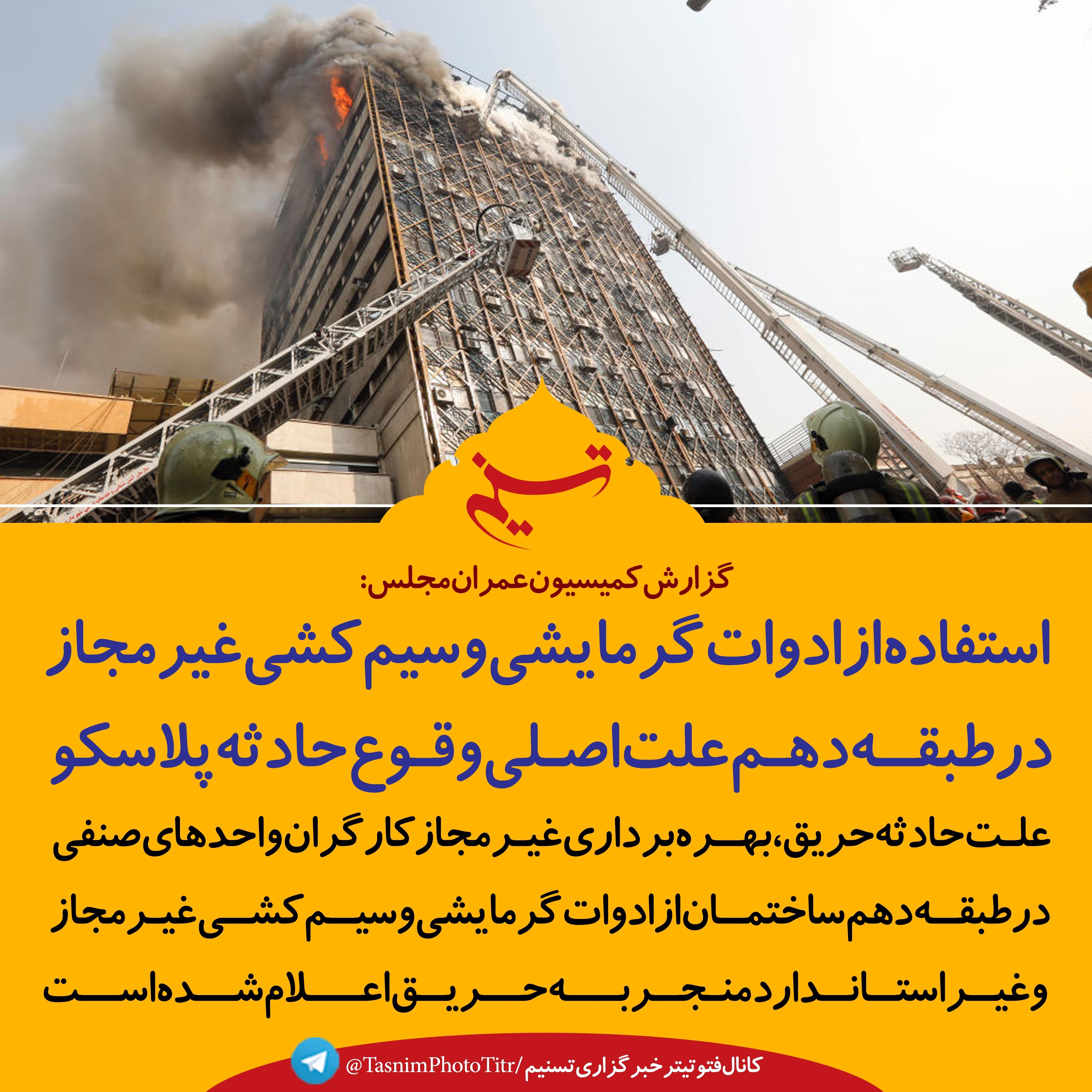 علت حادثه حریق، بهره‌برداری غیرمجاز کارگران واحدهای صنفی در طبقه دهم ساختمان از ادوات گرمایشی و سیم‌کشی غیرمجاز و غیراستاندارد منجر به حریق اعلام شده است.