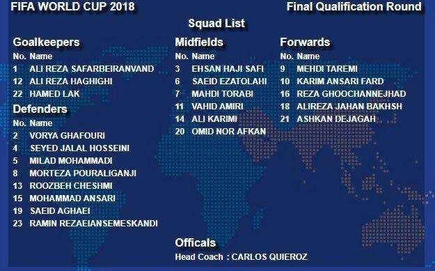 به گزارش خبرگزاری تسنیم، تیم ملی فوتبال کشورمان از ساعت 16:30 امروز (پنجشنبه) در ورزشگاه جام جهانی سئول به مصاف کره جنوبی میرود و کارلوس کیروش لیست 22 نفره تیم ملی برای این بازی را اعلام کرد.