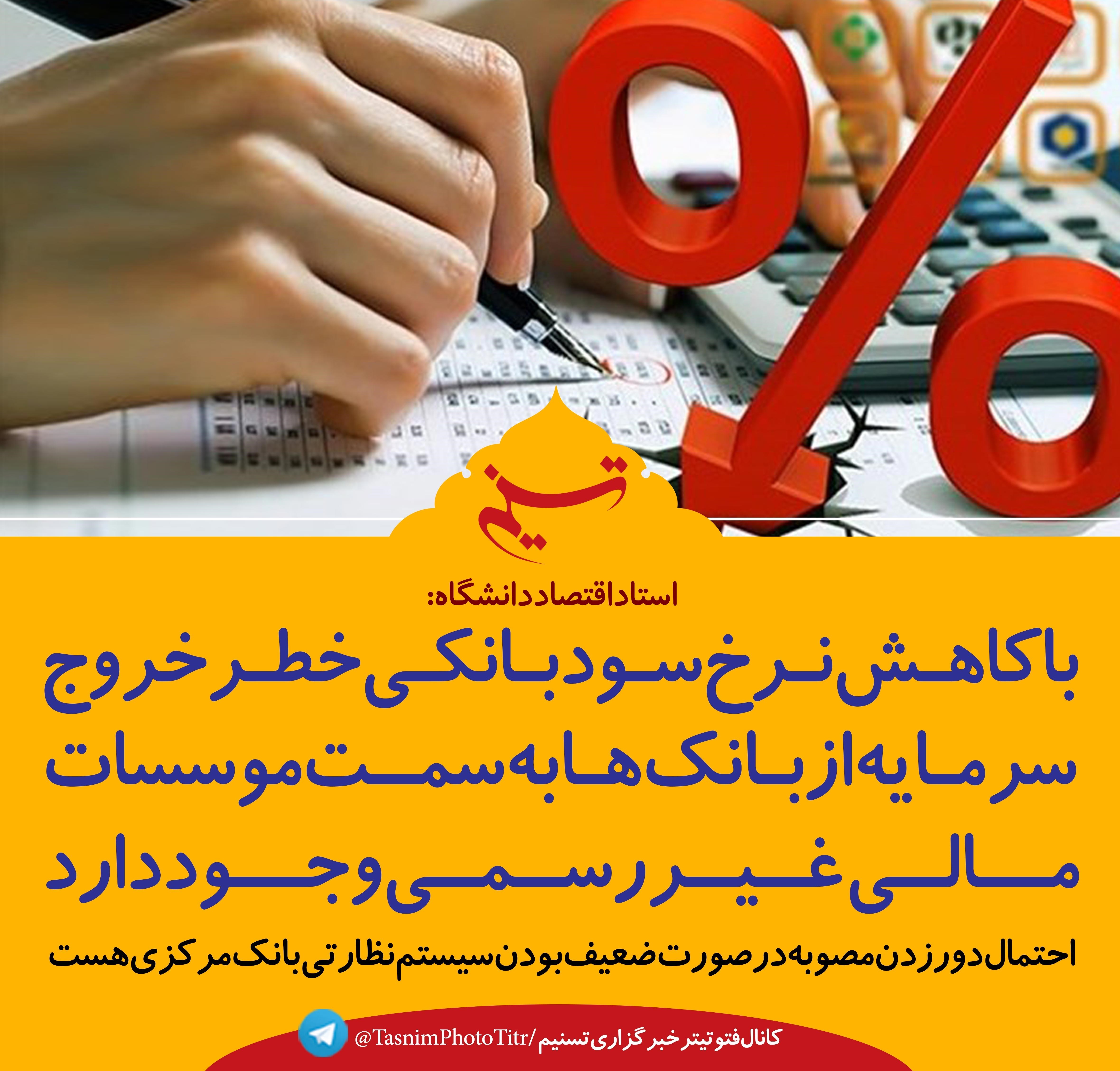 فتوتیتر/استاداقتصاد:با کاهش نرخ سود بانکی خطر خروج سرمایه از بانک‌ها به سمت موسسات مالی غیررسمی وجود دارد