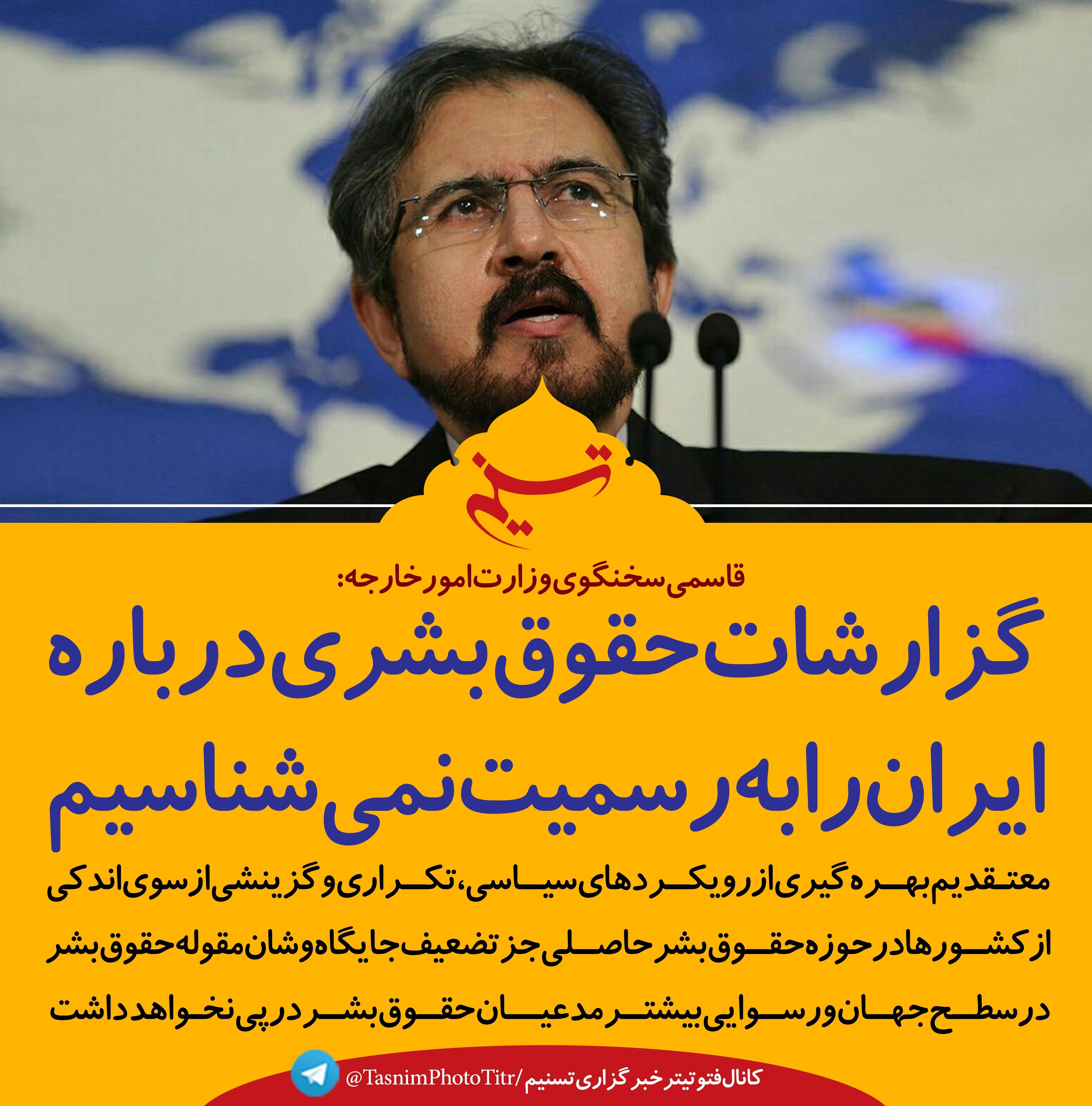 فتوتیتر/قاسمی:گزارشات حقوق‌بشری درباره ایران را به‌رسمیت نمی‌شناسیم