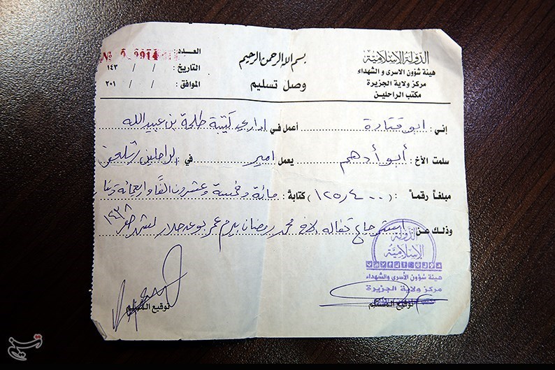 این برگهها از سوی مرکزی که «هیئت امور اسرا و شهدا»ی داعش نامیده میشود صادر شده و با ثبت مشخصات داعشی بههلاکترسیده یا اسیرشده، میزان مبلغ پرداختی به خانواده وی اعلام و توسط فرد دریافتکننده امضا میشود.