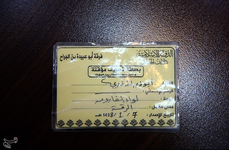 مثلاً دارنده این کارت عضو گردان «ابوعبیده جراح» بوده و اجازه تردد به شهر الرقه را داشته است.