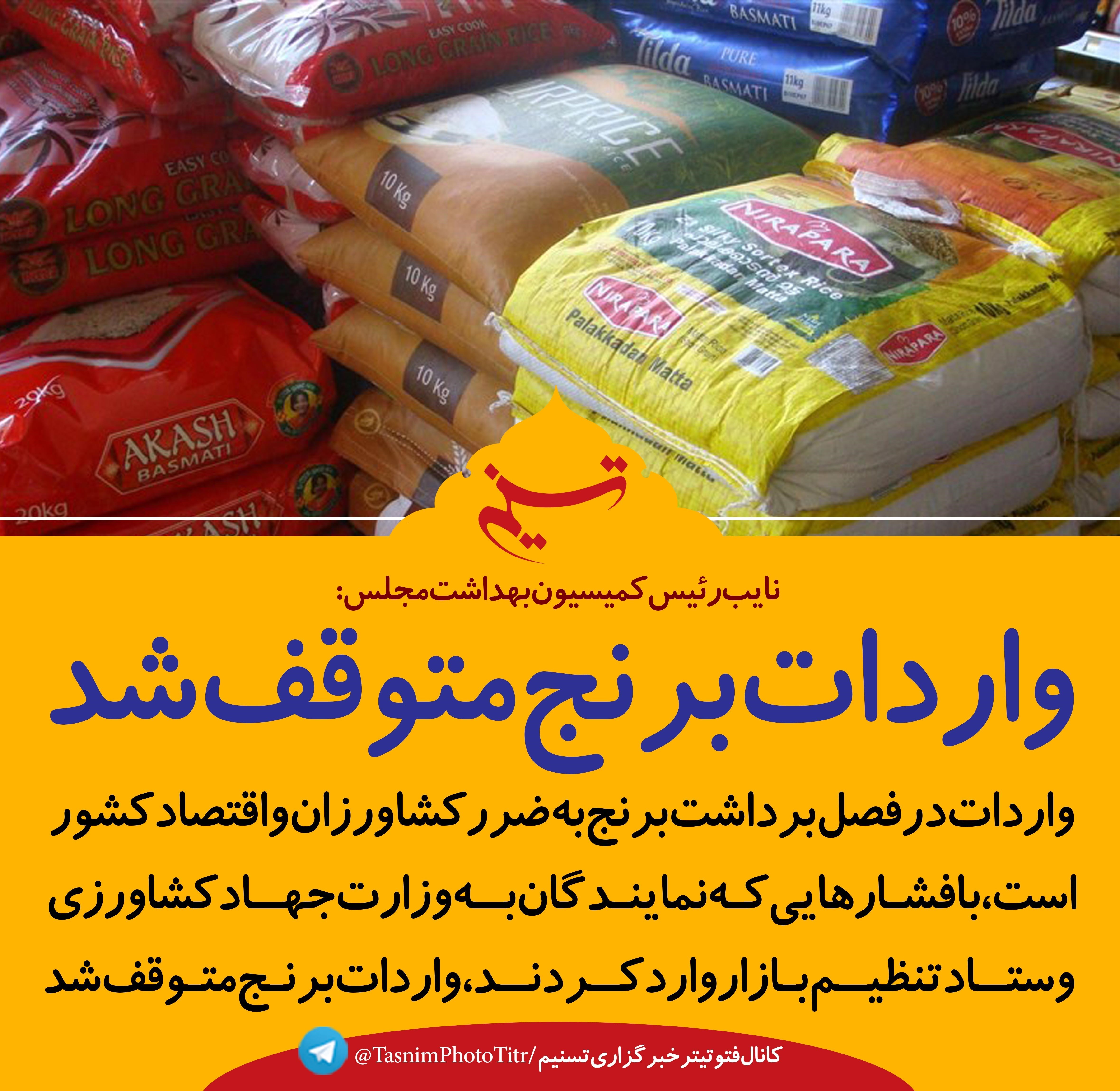 نایب‌رئیس کمیسیون بهداشت و درمان مجلس شورای اسلامی گفت: با بخشنامه وزارت جهاد کشاورزی واردات برنج متوقف شده است.