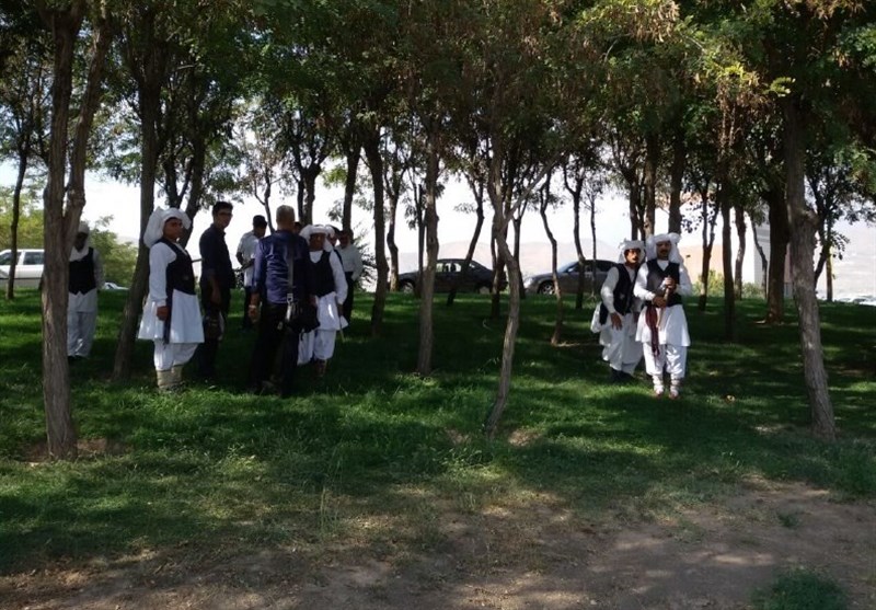 * عده‌ای با لباس‌های بلوچی در بیرون ورزشگاه حضور دارند که به نظر قرار است برنامه‌ای در ورزشگاه اجرا کنند.