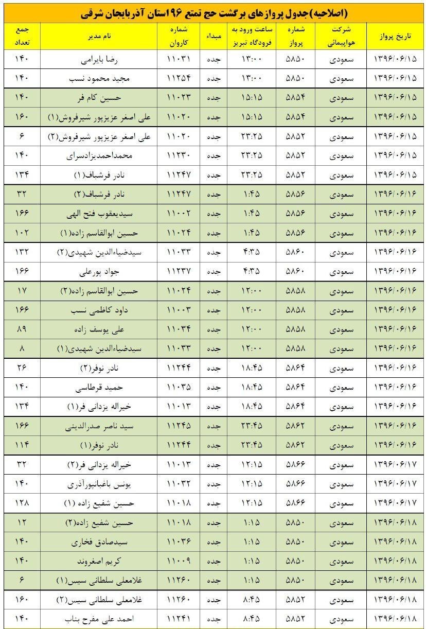 نخستین گروه از حجاج آذربایجان شرقی امروز وارد فرودگاه تبریز شدند+جدول
