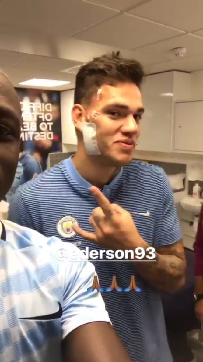 گواردیولا در پایان بازی درباره دروازه‌بان 24 ساله تیمش که در ابتدا وضعیتش نگران کننده به نظر می‌رسید اما دقایقی پس از بازی به رختکن برگشت، اظهار داشت: او دچار شکستگی نشده است و این خیلی اهمیت دارد. شاید بعد از آن (برطرف شدن کبودی) چهره‌اش زیباتر شود. ضربه مانه عمدی نبود چون ادرسون را ندید اما او آسیب دیده است. شاید در بازی بعدی به او میدان ندهیم.