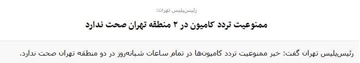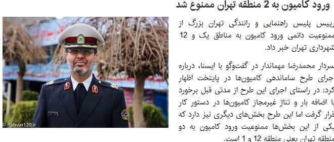 رییس پلیس راهنمایی و رانندگی تهران بزرگ اضافه کرده بود: البته ورود کامیونتها به این مناطق منعی ندارد.