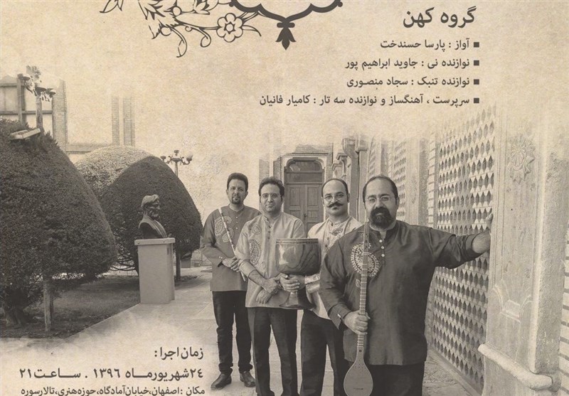 به گزارش باشگاه خبرنگاران پویا، کنسرت گروه «کُهن» به سرپرستی و آهنگسازی کامیار فانیان و خوانندگی پارسا حسندخت 24 شهریور 1396 در تالار سوره حوزه هنری اصفهان برگزار میشود.