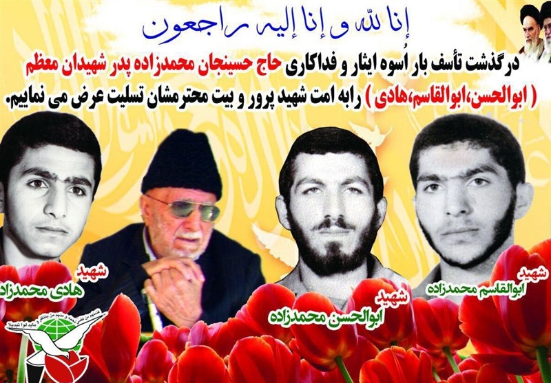 حاج حسینجان محمدزاده پدر بزرگوار شهیدان محمدزاده یکشنبه شب پس از گذراندن یک دوره بیماری و کهولت سن دارفانی را وداع گفت و به فرزندان شهیدش پیوست.