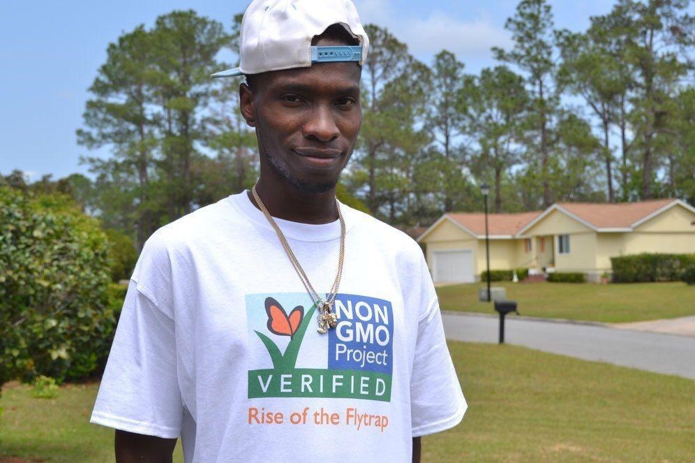 در ادامه تصاویر طراحی شده بر روی تیشرتها با عنوان NON GMO به معنای عاری از دستکاری ژنتیک آمده است: