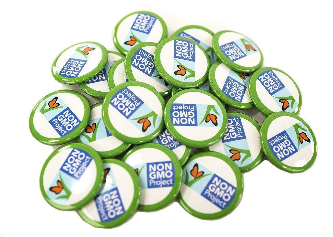 نمونههایی از بجهای(نشان) سینه برای تبلیغ محصولات غیرتراریخته: