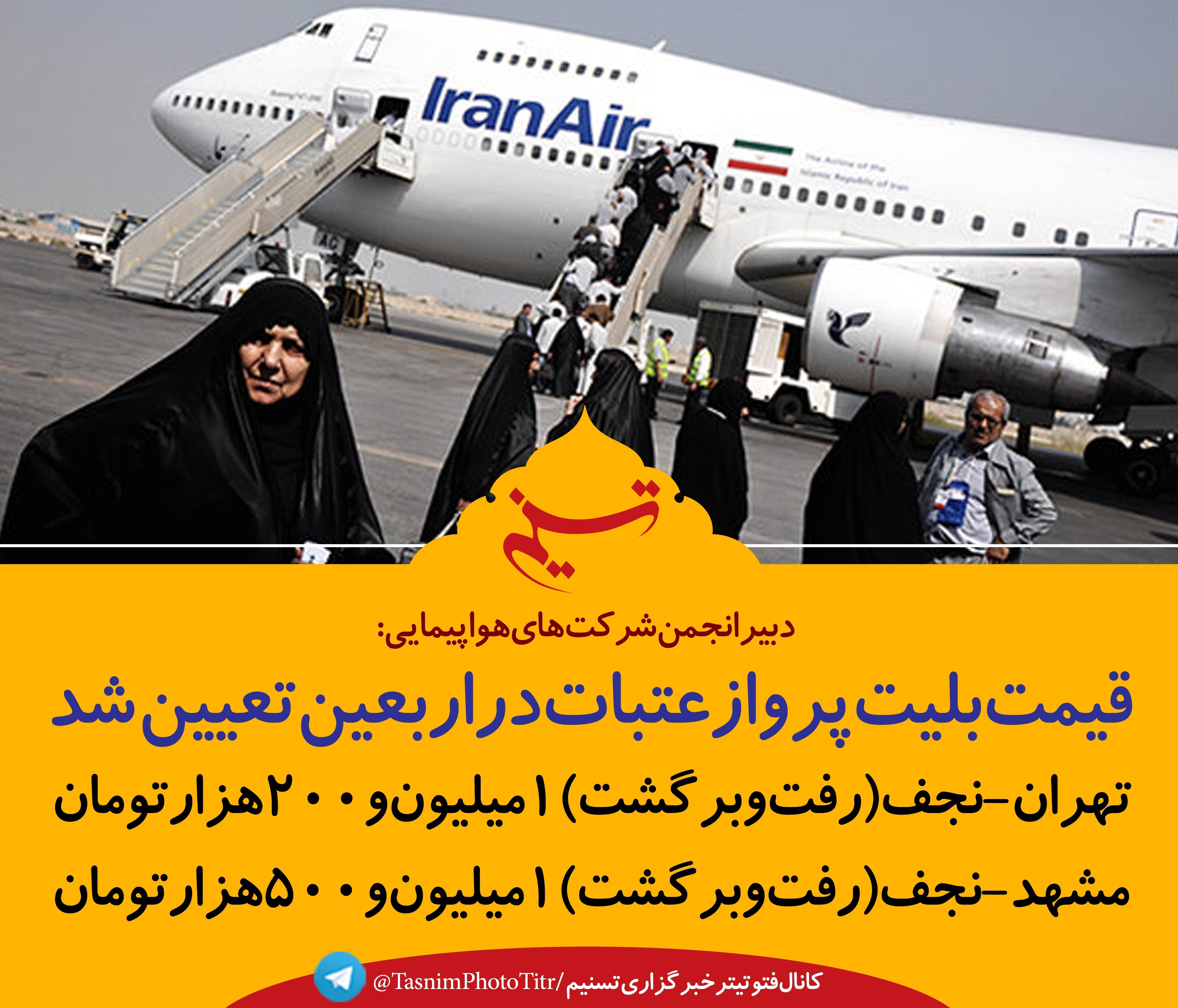 فتوتیتر/قیمت بلیت پرواز عتبات در اربعین تعیین شد
