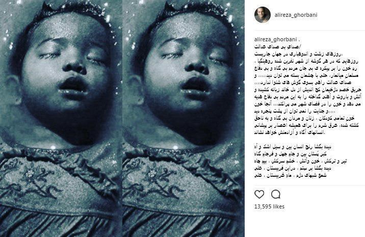 به گزارش خبرنگار فرهنگی باشگاه خبرنگاران پویا، انتشار خبر کشتار بیرحمانه مسلمانان میانمار موجی از اعتراض و تاسف در جهان را به همراه داشت. در این میان جمعی از هنرمندان نیز سعی کردند تا با انتشار اثری نسبت به این موضوع واکنش نشان دهند. علیرضا قربانی، از خوانندگان کشور نیز با انتشار یادداشتی در صفحه شخصیاش به این موضوع پرداخت.