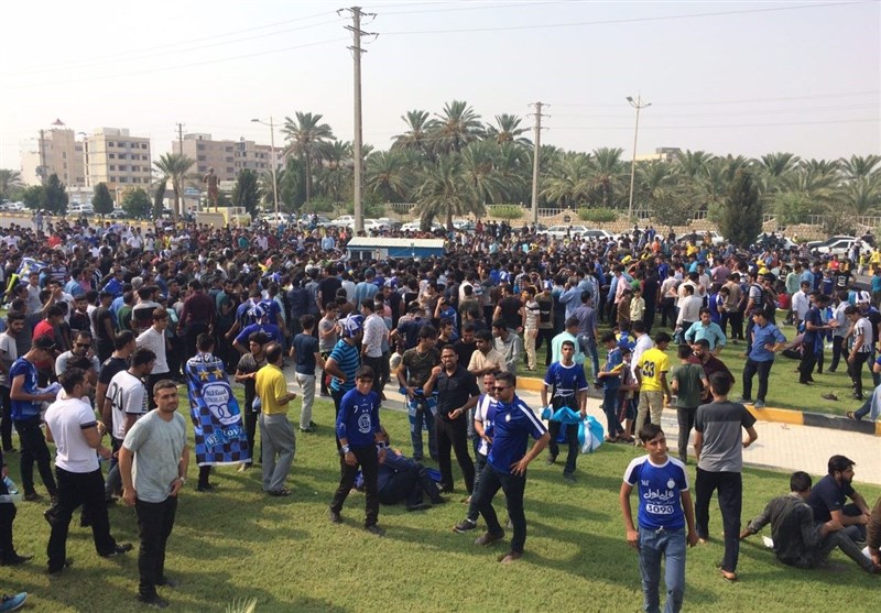 *شماری از هواداران استقلال که از شهرهای مختلف به شهر جم آمده بودند، مقابل مهمانسرای استقلال حضور دارند.