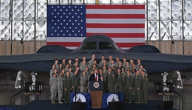 وی که مقابل یک بمب افکن رادار گریز بی-2 ایستاده بود، «کیم جونگ اون» رهبر کره شمالی را دیکتاتور خطاب کرد.