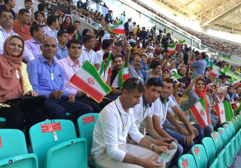-از ساعتها قبل مردم ترکمنستان به صورت متحدالشکل در ورزشگاه المپیک این کشور حضور پیدا کردهاند.