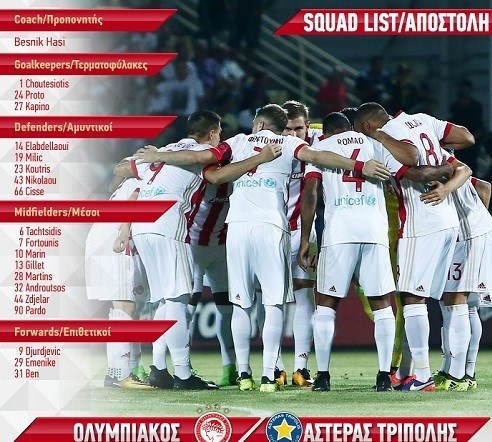 تیم المپیاکوس هم‌اکنون محمد بن (کومور)، امنیکه (نیجریه)، سبا (آرژانتین)، اوروس (صربستان) و کریم انصاری‌فرد (ایران) را به‌عنوان مهاجم در اختیار دارد.