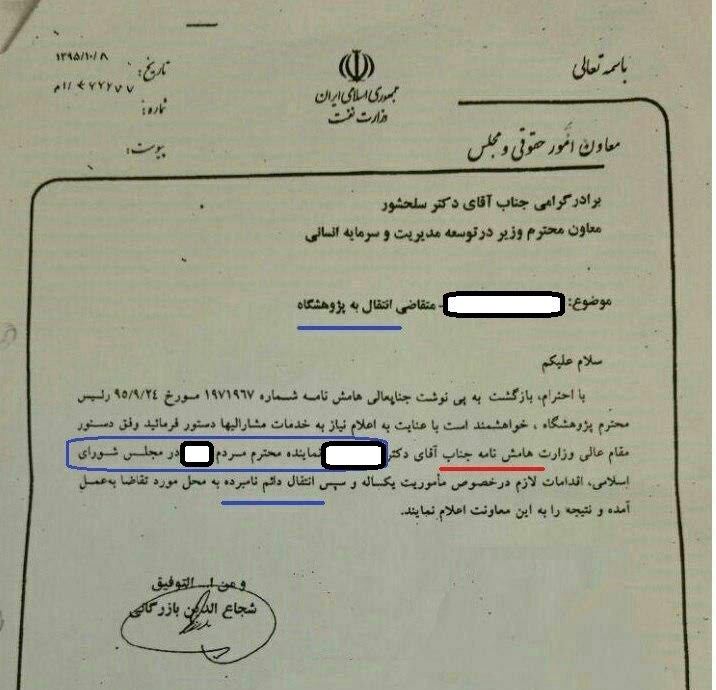 به گزارش خبرنگار اقتصادی خبرگزاری تسنیم، یکی از نمایندگان مجلس شورای اسلامی که پیش از این نسبت به استخدام یکی از بستگان درجه یک خود در یکی از شرکتهای زیرمجموعه وزارت نفت با وزیر نفت مکاتبه کرده بود، موفق به کسب نظر مساعد زنگنه جهت استخدام وی شد.