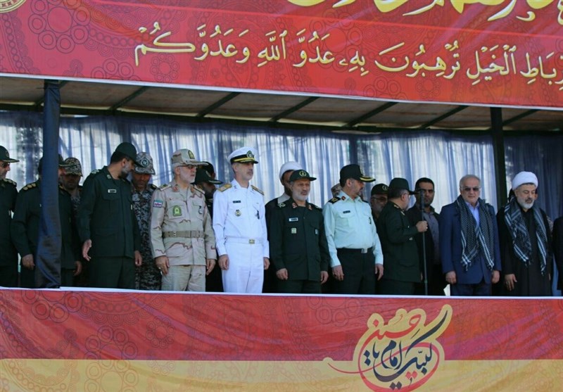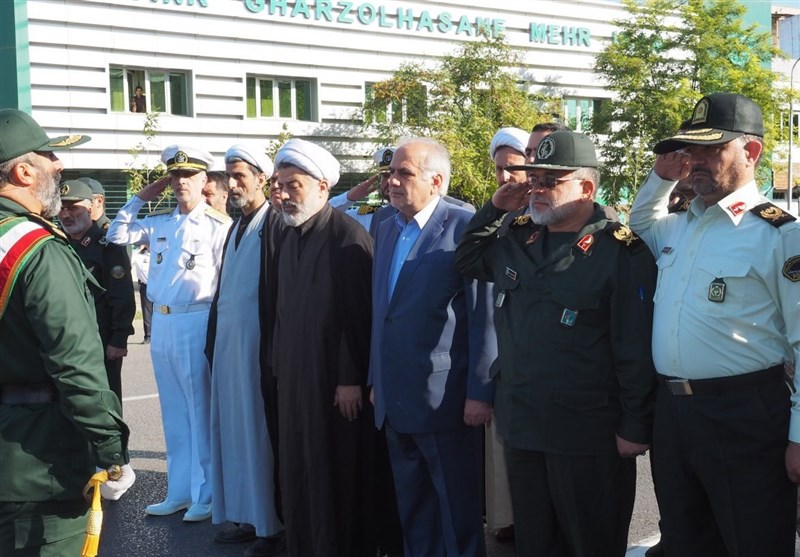 در این مراسم که خانواده معظم شهدا و جانبازان حضور داشتند، نیروهای مستقر در میدان از مقابل مسئولان استانی رژه رفتند.