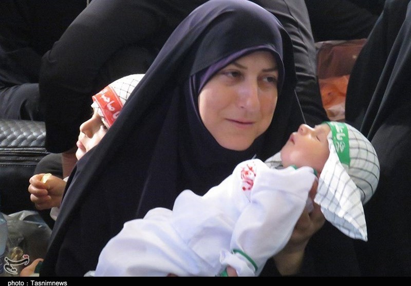 مادر دیگری با چشمانی بارانی خطاب به دوربین تسنیم اظهار داشت: کودک شیرخوارم را آوردهام تا مانند شهدای مدافع حرم آماده فدا شدن در راه حضرت سیدالشهدا (ع) کنمش.