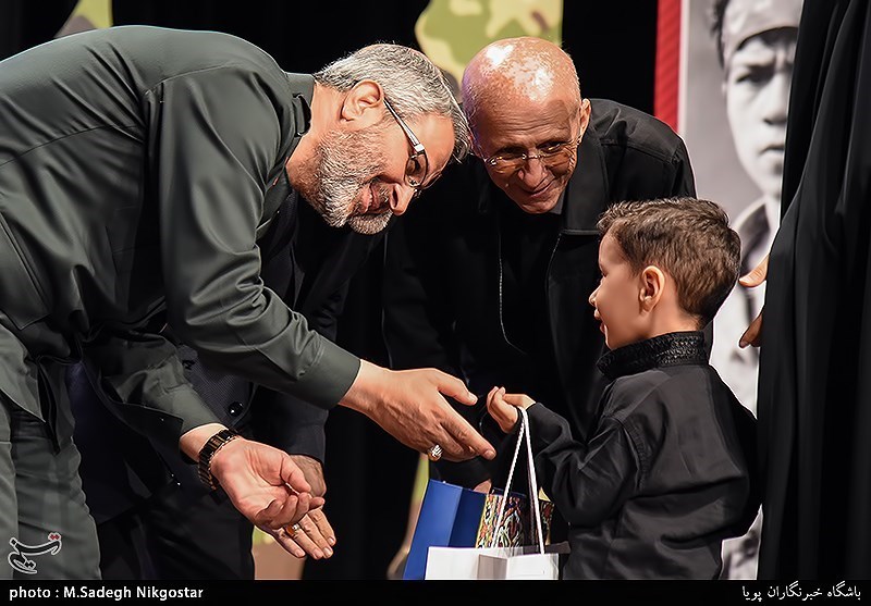 محمد خزایی پس از دریافت جایزه خود گفت: من همیشه وقتی یک هدیه میگرفتم آن را پیش پدرم میبردم و میگفتم پسرت یک هدیه دیگر گرفت، حال چند روزی است که پدرم را از دست دادهام. من 40 سال از خدا عمر گرفتم اما چه کشیدند فرزندان شهدای مدافع حرم که امروز بدون پدر به مدرسه رفتند.
