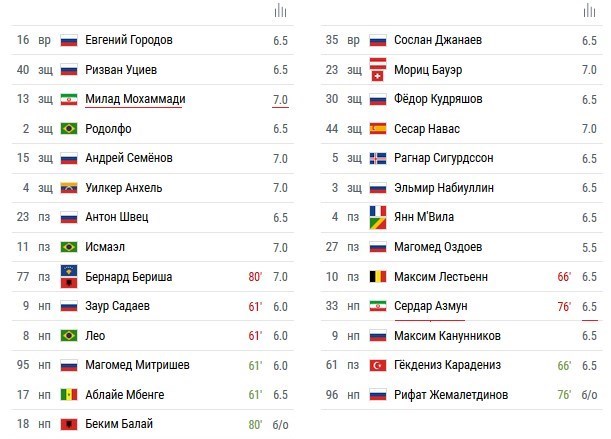 همچنین سردار آزمون، مهاجم ایرانی تیم روبینکازان که تا دقیقه 75 در زمین حضور داشت نمره فنی متوسط 6.5 را دریافت کرد.