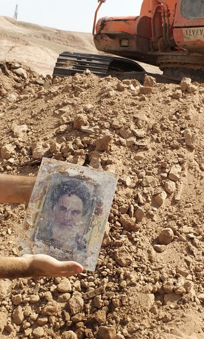 امروز سه شنبه چهارم مهرماه 96 همزمان با پنجم محرم اعضای تیم جستجوی مفقودین ستاد کل نیروهای مسلح در حین عملیات تفحص برون مرزی پیکر مطهر شهدا در منطقه زبیدات عراق، تصاویری از حضرت امام خمینی(ره) از زیر خاک کشف کردند. این تصاویر که در کنار ابدان مطهر شهدا بوده بعد از گذشت سالها هنوز سالم مانده است.