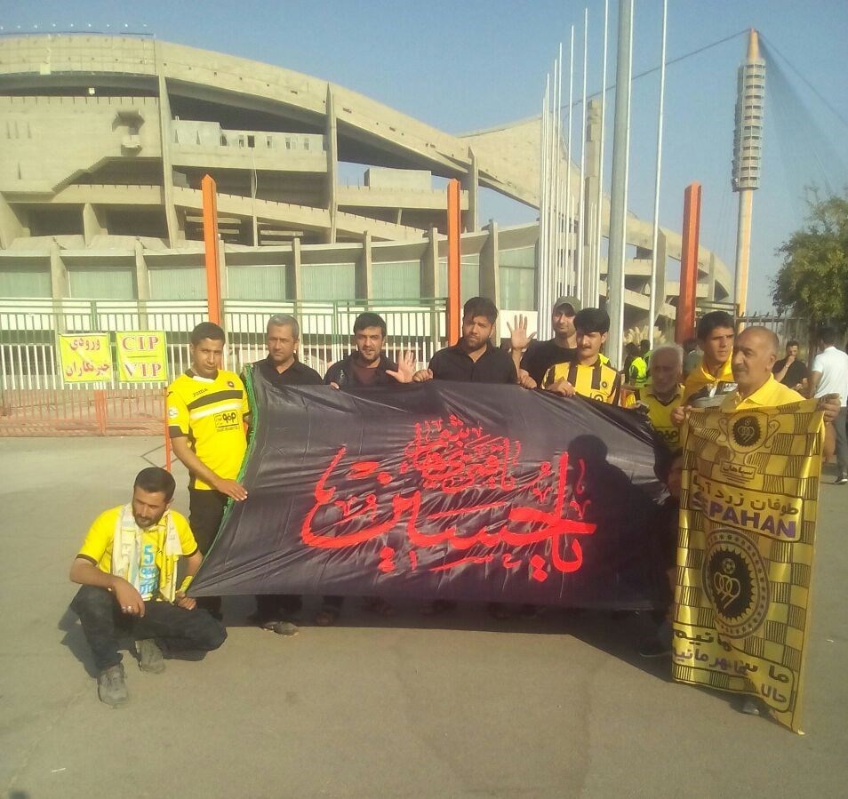 *برخی از هواداران سپاهان با پرچم امام حسین (ع) به ورزشگاه آمدند.