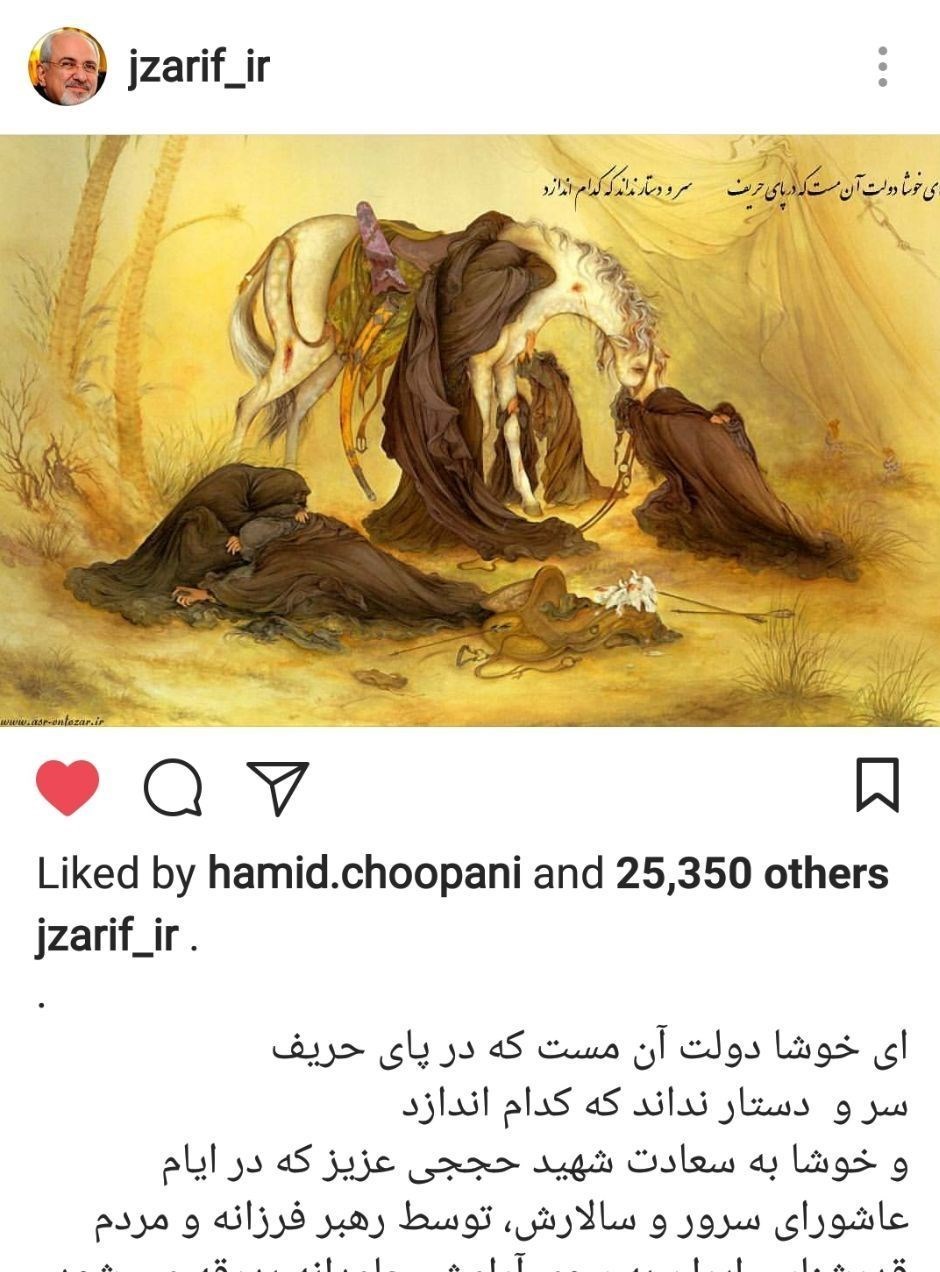 به گزارش گروه سیاست خارجی خبرگزاری تسنیم، محمد جواد ظریف وزیر خارجه کشورمان به مناسبت تشییع و بدرقه با شکوه محسن حججی در صفحه اینستاگرام خود نوشت: