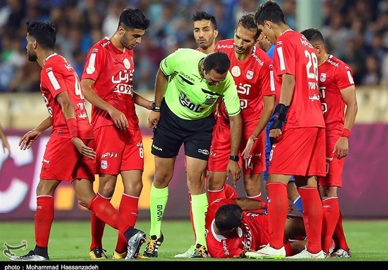 فاخر تهامی، نخستین کارت زرد این بازی را در دقیقه 7 و پس از تکل شدید روی پای آندرانیک تیموریان دریافت کرد.
