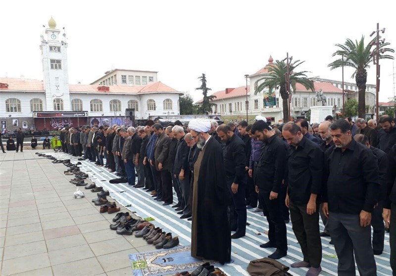 عزاداران سرور و سالار شهیدان پس از اقامه عزا و نوحه سرایی در عزای حضرت ابوالفضل العباس (ع)، نماز ظهر تاسوعا را در پیاده راه فرهنگی شهرداری رشت اقامه کردند.