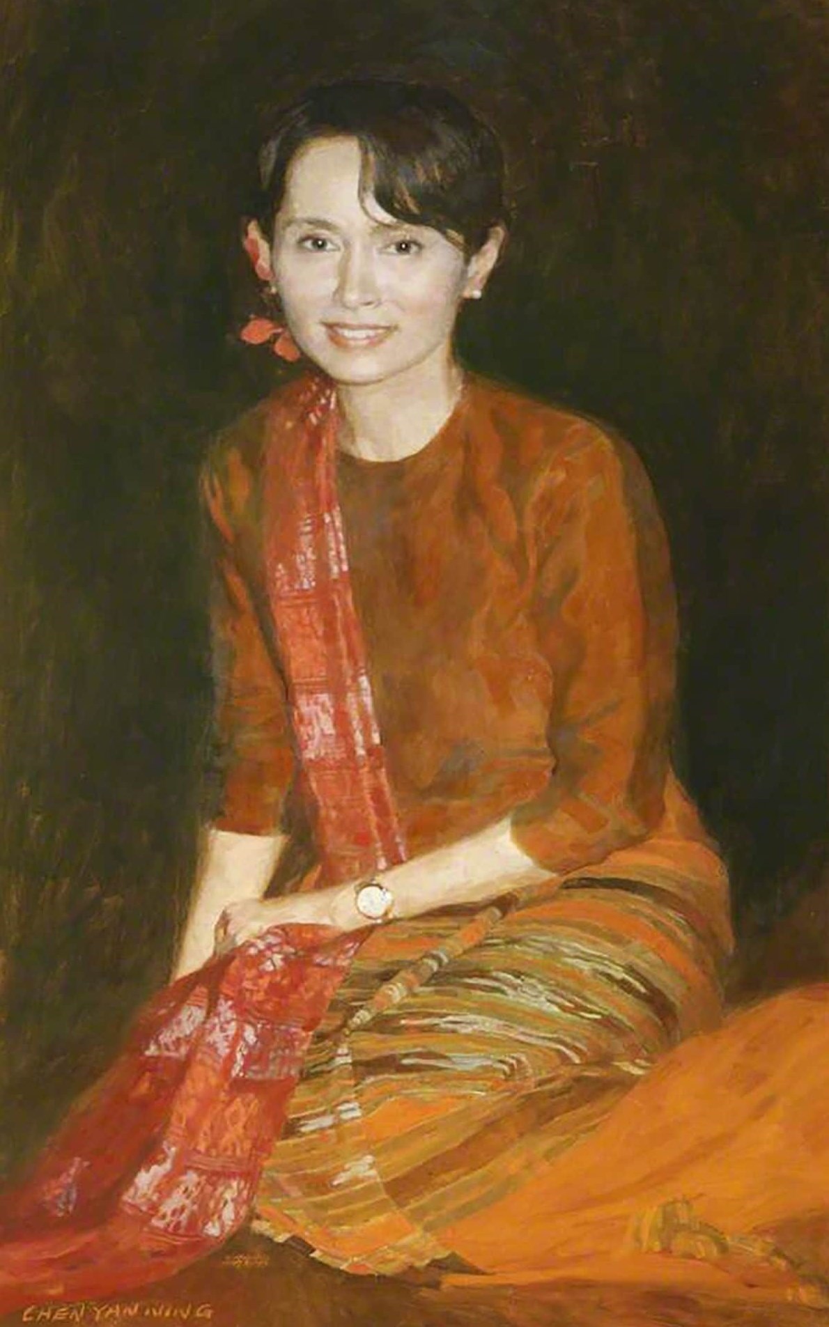 پورتره آنگ سان چی که در سردر دانشکده سنتهیو دانشگاه آکسفورد نصب شده بود و اکنون به انبار منتقل شده است