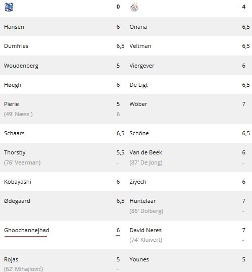 همچنین علیرضا جهانبخش، ملیپوش ایرانی تیم آلکمار که حضور 66 دقیقهای در بازی برابر فاینورد داشت نمره ضعیف 5 را کسب کرد. آلکمار در این بازی خانگی شکست سنگین 4 بر صفر را برابر فاینورد پذیرا شد.