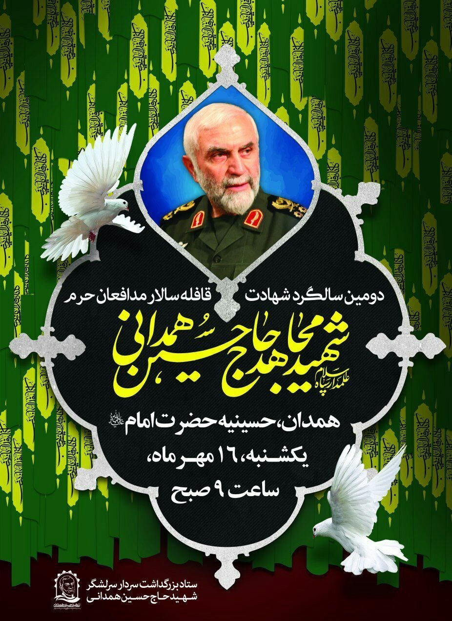 به گزارش خبرگزاری تسنیم از همدان، دومین مراسم سالگرد شهادت قافله سالارشهدای مدافع حرم سرلشگر پاسدار "شهیدحاج حسین همدانی" در دارالمومنین و دارالمجاهدین همدان برگزار میشود.