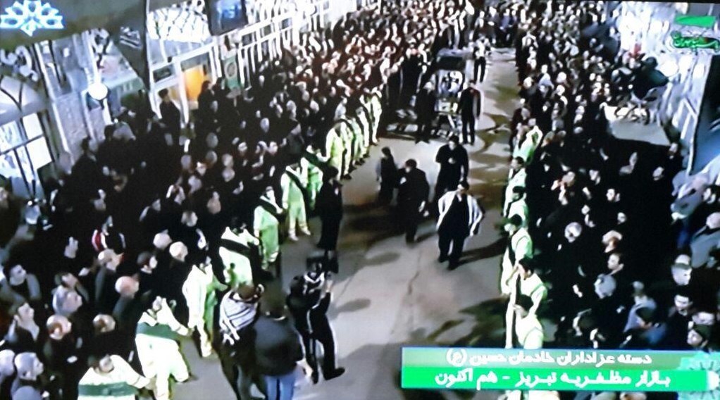 عصر امروز هم هیئت پاکبانان تبریز با عنوان خادمان حسین در بازار مظفریه به عزاداری پرداختند و در سوگ اباعبدالله الحسین (ع) به سینه زنی و مرثیه سرایی پرداختند.
