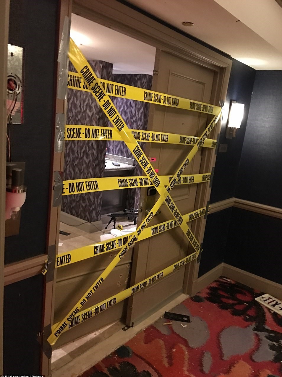 به گزارش خبرنگار اجتماعی خبرگزاری تسنیم، در این تصاویر جسد "استیفن پادوک" تیرانداز وگاس در طبقه سی و دو هتل در اتاق کنار اسلحهها، مهمات و یک یادداشت احتمالی دیده میشود.