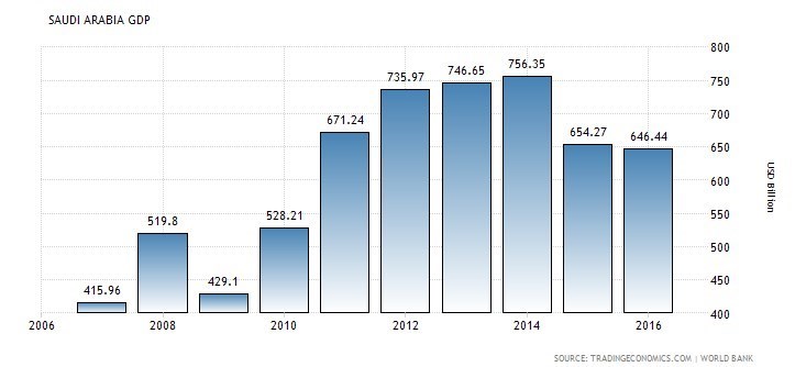 *تولید ناخالص داخلی عربستان سال به سال در حال کاهش است.
