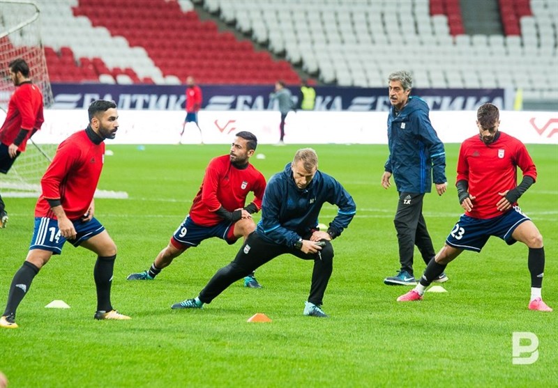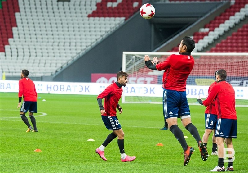 به گزارش خبرگزاری تسنیم، دیدار دوستانه تیم ملی فوتبال کشورمان مقابل روسیه، میزبان جام جهانی در حالی از ساعت 19:30 امروز (سهشنبه) در ورزشگاه شهر کازان برگزار میشود که شاگردان کارلوس کیروش آخرین تمرین خود را در ورزشگاه محل انجام بازی برگزار کردند. این تمرین شب گذشته برگزار شد که تصاویر مربوط به آن را در زیر میبینید: