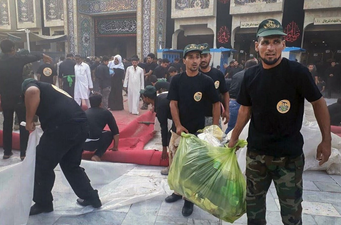 به گزارش گروه بینالملل خبرگزاری تسنیم، رزمندگان مقاومت اسلامی نُجَباء در ایام عزاداری شهادت سرور و سالار شهیدان که شهر مقدس کربلا میزبان میلیونها زائر شیفته از داخل و خارج عراق است؛ در زبالهروبی و پاکیزهسازی مسیرهای پیادهروی، خیابانهای شهرهای زیارتی و صحنهای حرمهای اهلبیت(ع) مشارکت کردند.