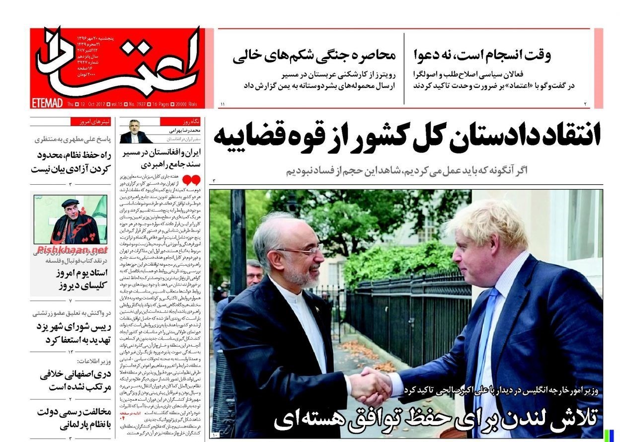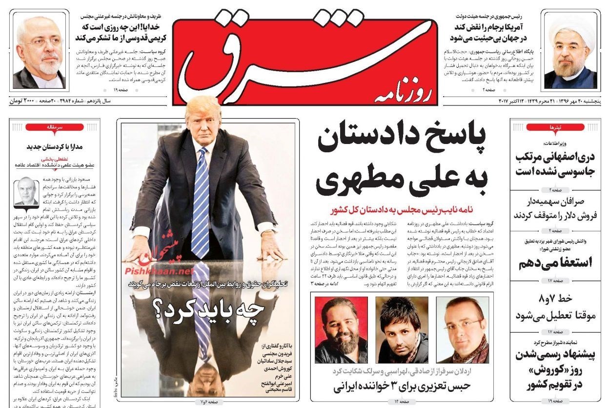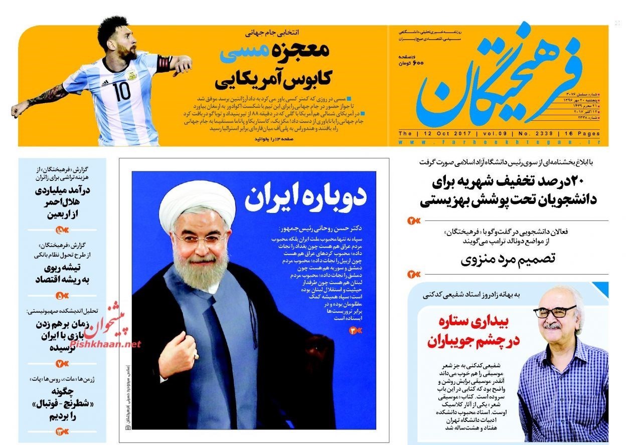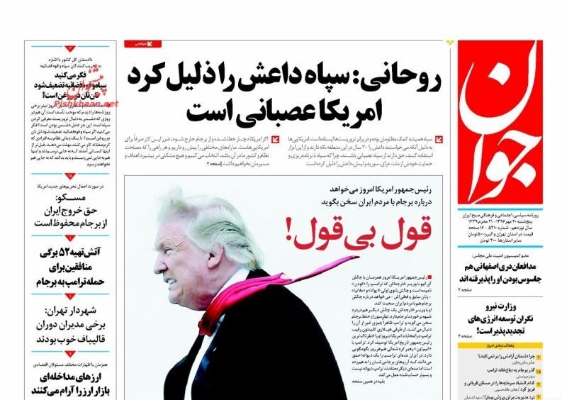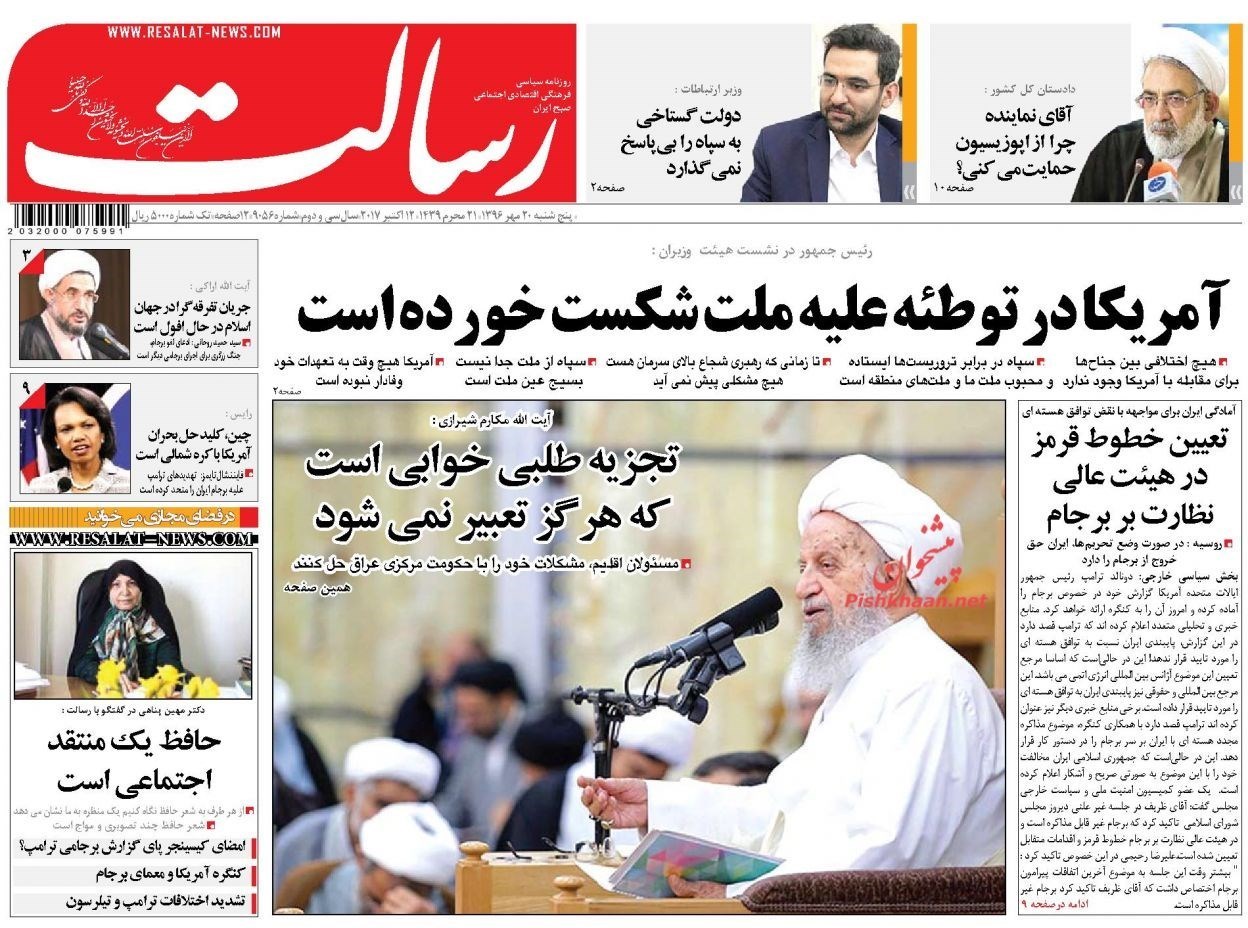 تصاویر صفحه اول روزنامه‌های پنجشنبه 20 مهر