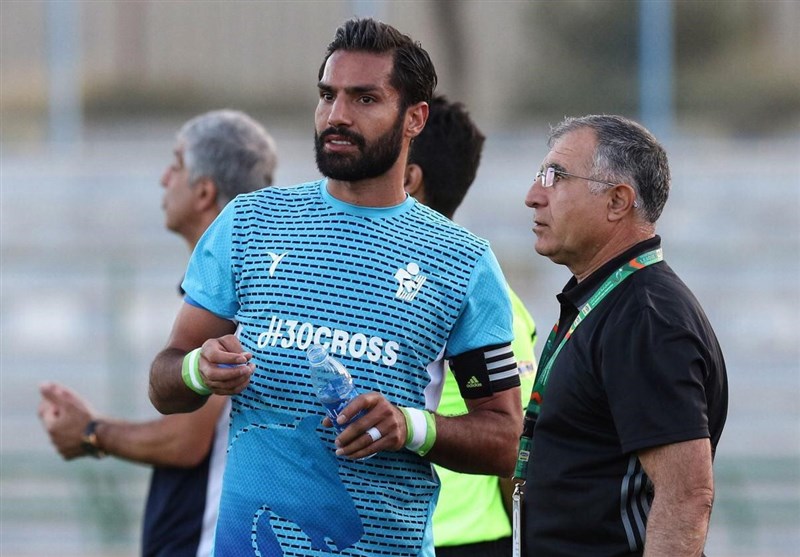 *رضا رجبی، پیشکسوت باشگاه استقلال در ورزشگاه حضور پیدا کرده و از روی سکوها بازی دو تیم را تماشا میکند. رجبی نکات مهم فنی بازی را نکتهبرداری میکند.