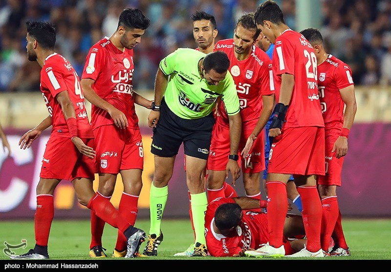 قضاوت این دیدار بر عهده موعود بنیادی فر است که در نیمه نخست، محمد نادری از تراکتورسازی را با کارت زرد خود جریمه کرد.