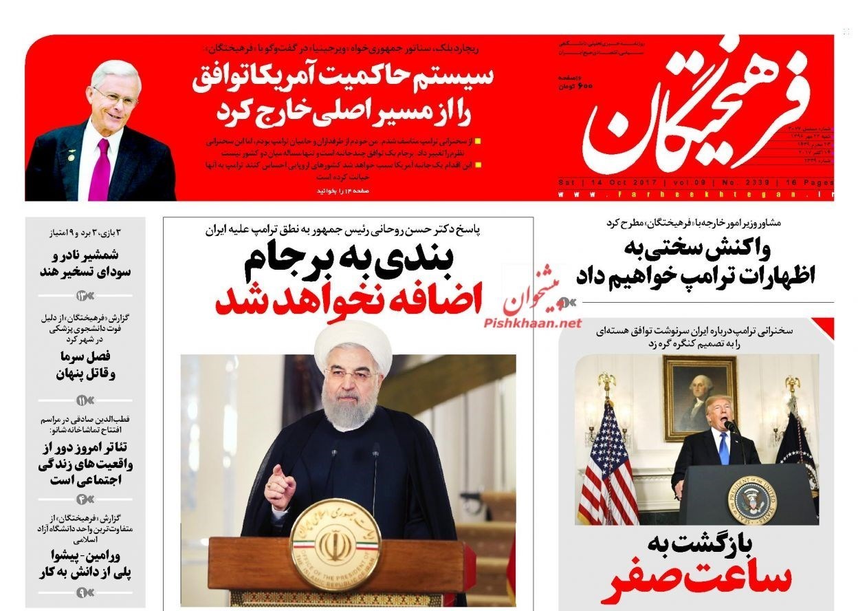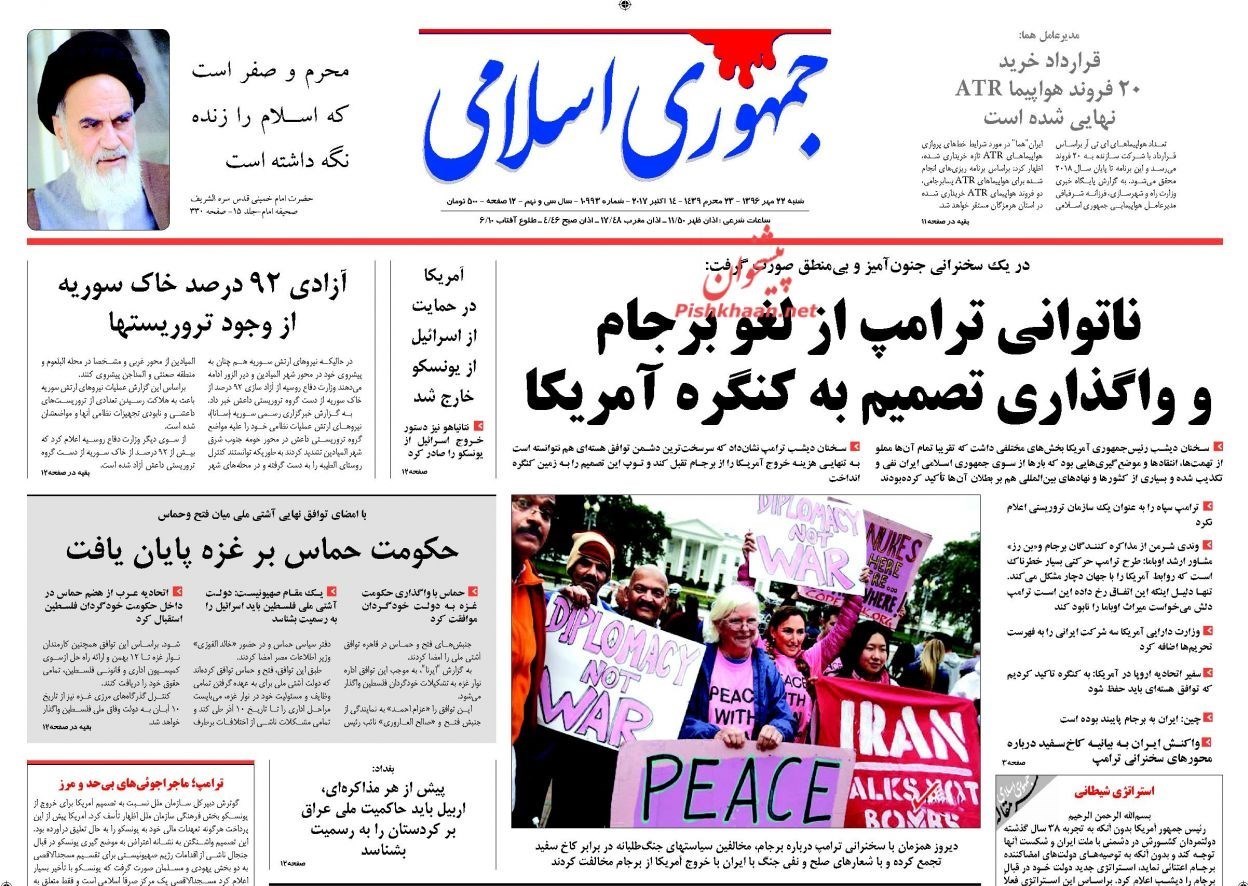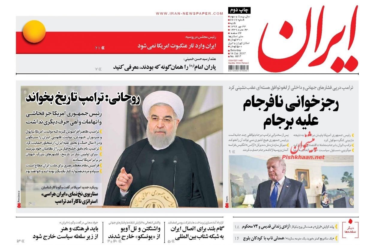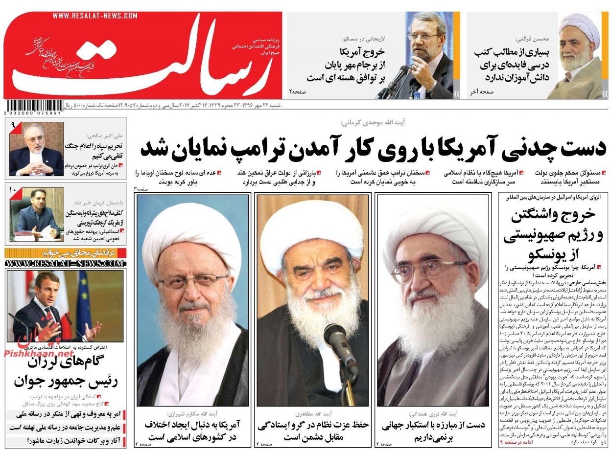 تصاویر صفحه اول روزنامه‌های شنبه 22 مهر