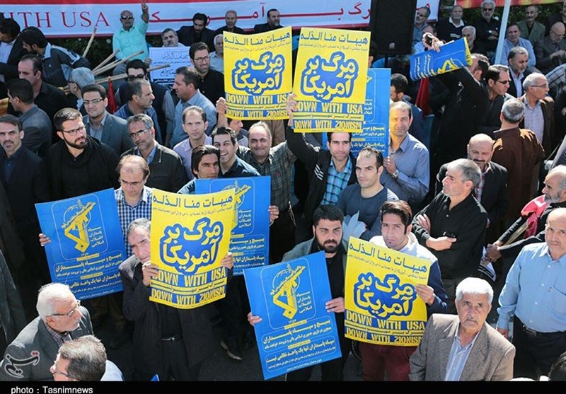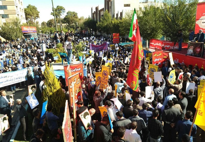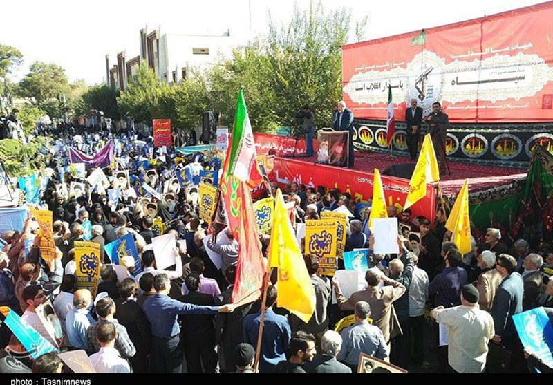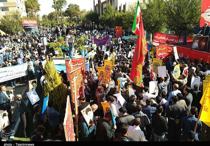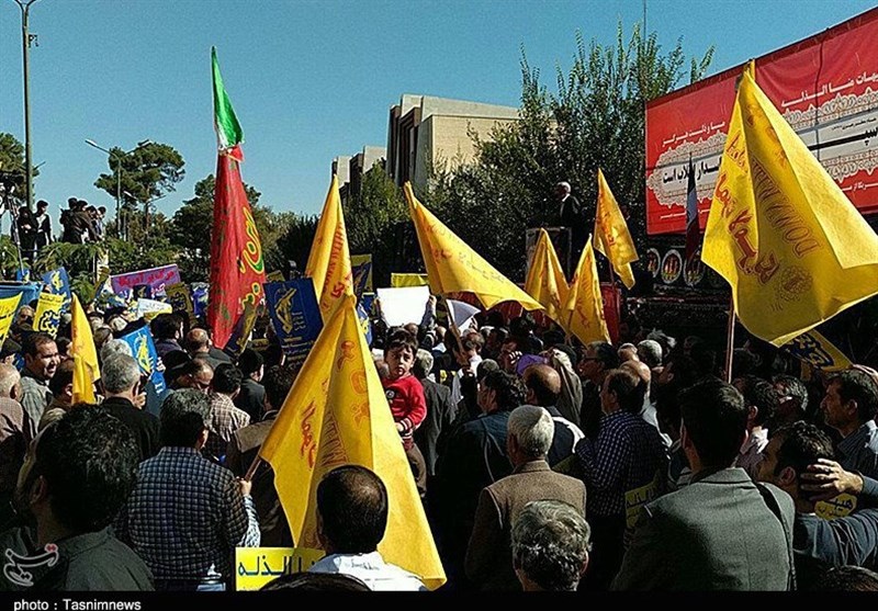 مردم انقلابی اصفهان با فریادهای الله اکبر و مرگ بر آمریکا، دشمنی و بغض استکبار جهانی علیه فرزندان برومند و جان برکف ملت در نیروهای مسلح به ویژه سپاه پاسداران را محکوم کرده و بار دیگر بر ایستادگی جمهوری اسلامی بر مواضع قاطع خود تأکید کردند.
