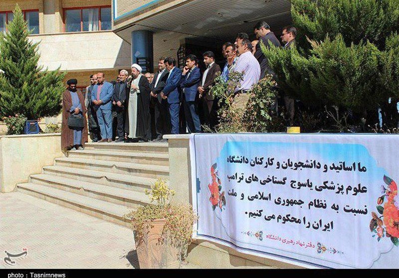 دانشجویان دانشگاه علوم پزشکی یاسوج در اعتراض به اظهارات ضد ایرانی ترامپ رئیس جمهور آمریکا تجمع کردند.