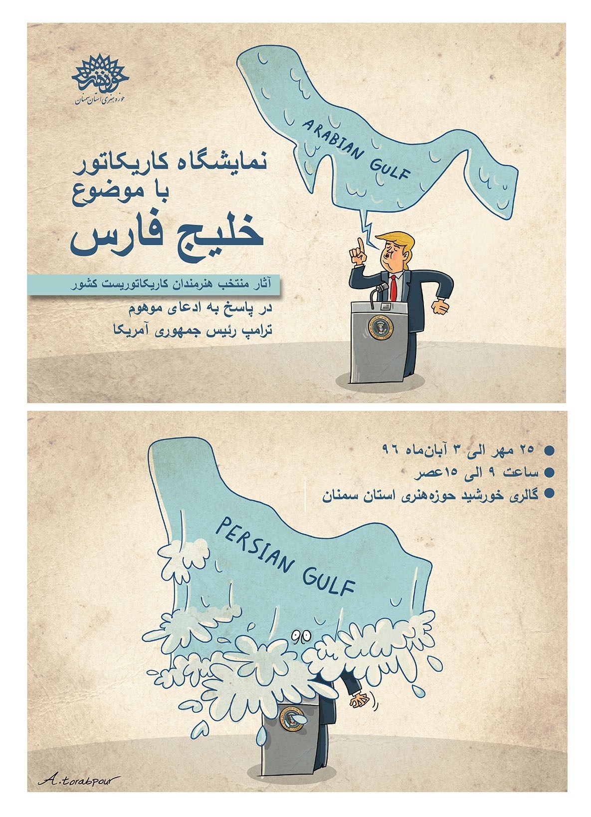یاراحمدی که خود از هنرمندان گرافیست کشور است، گفت: پس از اینکه رئیس جمهور امریکا در سخنرانی اخیرش ادعایی موهوم را مطرح کرد و از عنوانی جعلی برای «خلیج فارس» استفاده کرد، تصمیم به برگزاری نمایشگاه کاریکاتور «خلیج فارس» گرفتیم.