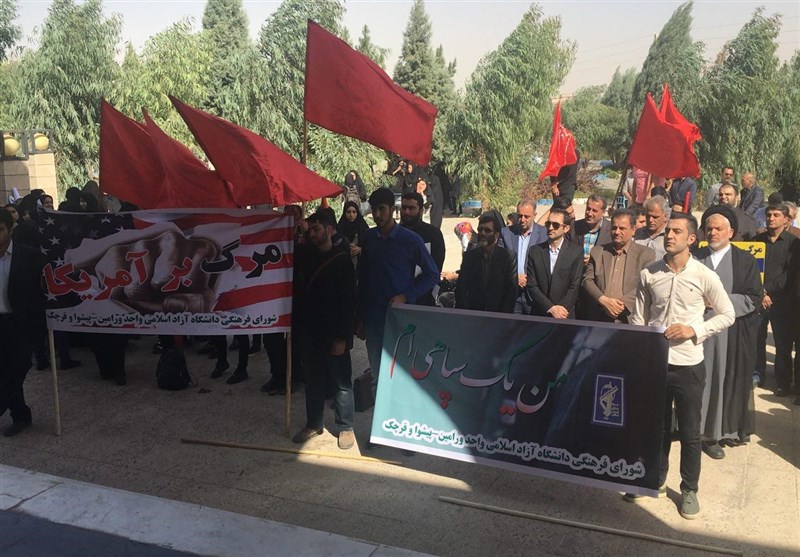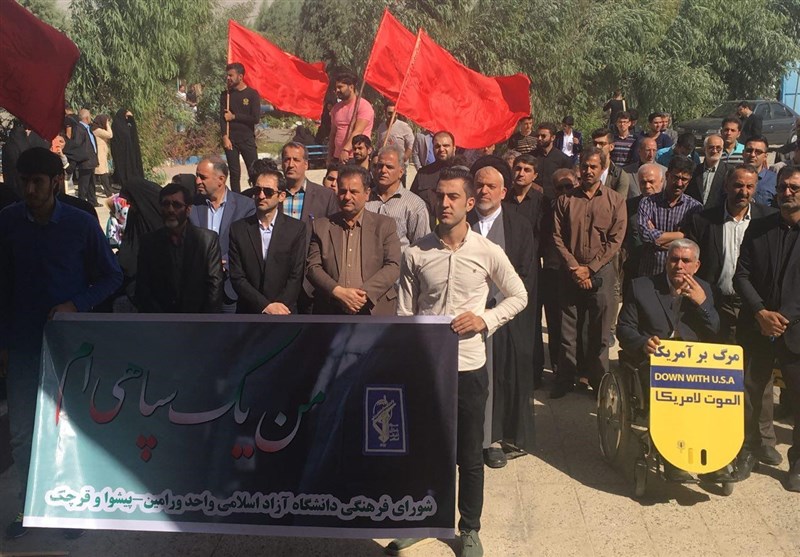 به گزارش خبرگزاری تسنیم از پیشوا، دانشجویان دانشگاه آزاد اسلامی واحد پیشوا ظهر امروز در تجمعی که در محل دانشگاه برگزار شد، اظهارات توهینآمیز رئیسجمهور آمریکا علیه ملت ایران را محکوم کردند.