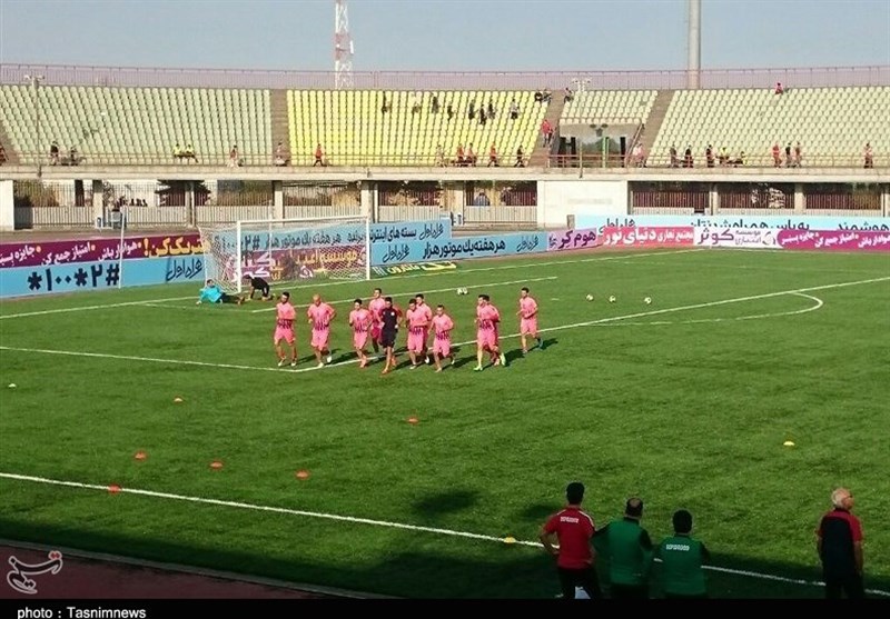 *پیش از شروع مسابقه، بازیکنان دو تیم وارد زمین بازی شدهاند و خود را گرم کردند.