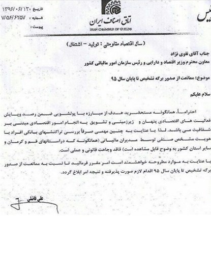 بنابراین گزارش پیش از این اظهارات، فاضلی رئیس اتاق اصناف نیز در نامهای به رئیس کل سازمان امور مالیاتی، خواستار ممانعت از صدور برگه تشخیص تا پایان سال 95 به جای 91 شده بود.